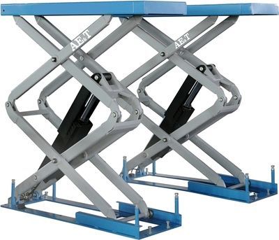 Ножничный электрогидравлический подъёмник F6105, монтируемый в пол. Используется для слесарных работ.Преимущества:Специальный клапан, регулирующий скорость опускания.Пневматическая система, управляющая замками безопасности механического типа.Предохранительный клапан, срабатывающий при перегрузке подъёмника.Гидравлическая синхронизация платформ.Функция ручного аварийного спуска.Пневматическое выключение стопорных механизмов.4 резиновые подушки, предусмотренные для защиты кузова машины от повреждений.Наименьшая высота подъёма — 33 см.Подача звукового сигнала при завершающем этапе спуска.