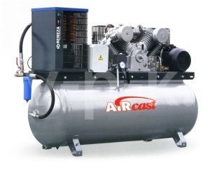 Поршневой профессиональный компрессор REMEZA СБ4/Ф-500.LT100Д присоединяется к пневмоинструментам рапидным соединением. Имеет меньшее количество рабочих циклов, т.к. сжатие воздуха (ресивер 500 литров) осуществляется в два этапа. Рефрижераторный осушитель предотвращает засорение воздуха на выходе маслом и конденсатом. Компрессор REMEZA СБ4/Ф-500.LT100Д с электродвигателем имеет пониженный уровень шума. Управляется при помощи ПДУ. Для визуального контроля установлены манометры. Чугунный поршневой блок является гарантом высокого КПД и длительной эксплуатации.